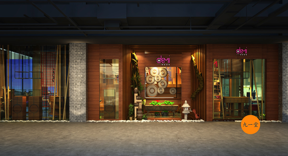 日式黛米藥妝部屋(DEMI)美容院所有產(chǎn)品均進(jìn)口韓日最高科技的護(hù)膚產(chǎn)品。產(chǎn)品與國內(nèi)最大的不同,應(yīng)該是品牌針對(duì)人群的不一樣, 甲方是從事美容行業(yè)多年的業(yè)內(nèi)人事, 之所以選擇日式風(fēng)格來闡述自己的空間店面,這并非偶然,一方面產(chǎn)品大部分來自日本,另一方面甲方非常喜歡日式的禪意文化.成都九一堂商業(yè)空間設(shè)計(jì)將日本的枯山水,一步一小景小景比的造景更有意境。整個(gè)空間體檢非常精致與品味,空間表現(xiàn)上張弛有度,緊湊與留白相輔相成。九一堂商業(yè)空間設(shè)計(jì)把空間體驗(yàn)設(shè)計(jì)用到了極致。成都美容院設(shè)計(jì)一直是九一堂的核心競(jìng)爭(zhēng)力, 門口的枯山石造景,隨著腳步的行進(jìn)踏實(shí)木板進(jìn)來,外墻繪制日式手繪圖,室內(nèi)搭建假二層,增加趣味又增加了一個(gè)功能儲(chǔ)存空間。室內(nèi)軟裝配有櫻花、麻布、白砂石、枯藤等來裝置,讓產(chǎn)品在景中展示。日式黛米藥妝部屋(DEMI)美容院除了空間體驗(yàn)的設(shè)計(jì)打造外,還包括品牌形象的設(shè)計(jì),極簡線條構(gòu)成logo創(chuàng)意的主體,體現(xiàn)精致, 修復(fù), 美滿的品牌內(nèi)涵.