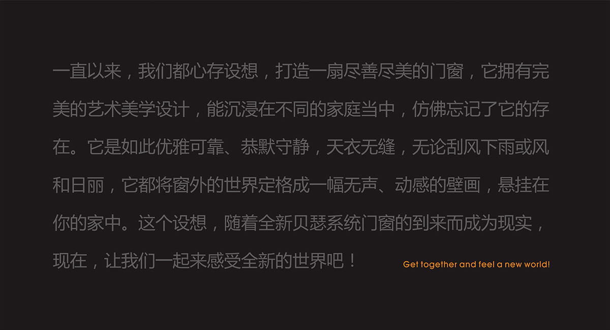 一直以來,我們都心存設(shè)想,打造一扇盡善盡美的門窗,它擁有完美的藝術(shù)美學(xué)設(shè)計(jì),能沉浸在不同的家庭當(dāng)中,仿佛忘記了它的存在。它是如此優(yōu)雅可靠、恭默守靜,天衣無縫,無論刮風(fēng)下雨或風(fēng)和日麗,它都將窗外的世界定格成一幅無聲、動(dòng)感的壁畫,懸掛在你的家中。這個(gè)設(shè)想,隨著全新貝瑟系統(tǒng)門窗的到來而成為現(xiàn)實(shí),現(xiàn)在,讓我們一起來感受全新的世界吧!成都九一堂品牌策劃設(shè)計(jì)為貝瑟系統(tǒng)門窗全案系統(tǒng)服務(wù),從項(xiàng)目初期的立項(xiàng),到品牌架構(gòu)與定位,再到品牌名稱的甄選,vi體系的設(shè)計(jì),再到紅星美凱龍第一家門店的落地,凝聚了甲方與九一堂眾多主創(chuàng)的智慧.門窗市場近幾年發(fā)展非常迅猛,良木道,飛宇,森鷹,皇派,墨瑟行業(yè)中的有力競爭者,新品牌怎么找到差異,差異化互動(dòng)體驗(yàn)是本項(xiàng)目核心,九一堂提出: 高端美窗大師,為藝術(shù)重新定義全景生活。全鋁極簡門窗專家,為家庭帶來美學(xué)人居體驗(yàn)。智慧美景生活倡導(dǎo)者,為生活帶來智能科技互動(dòng)。共同構(gòu)成了貝瑟系統(tǒng)門窗品牌特質(zhì)與內(nèi)核.