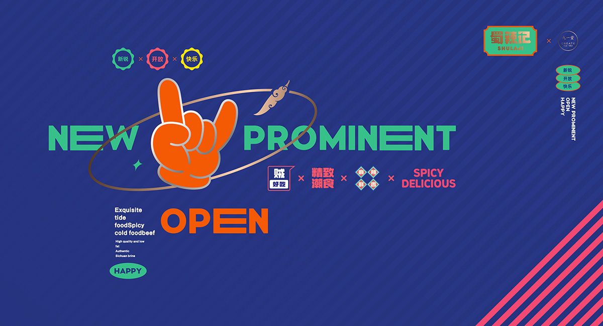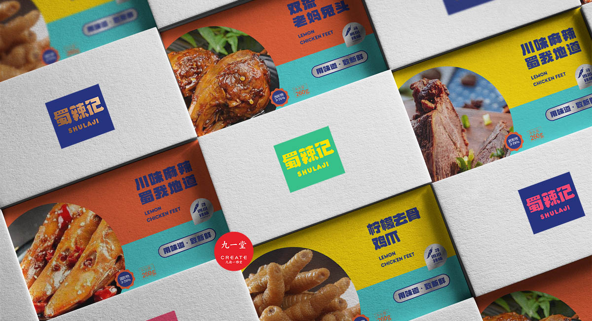 四川獨(dú)有地理環(huán)境,孕育出了許多以辣為主的酸辣雞爪、老麻兔頭、藤椒鴨等極具地方特色的傳統(tǒng)四川小吃。蜀辣記秉著熱愛川蜀辣味的初衷,重新發(fā)現(xiàn)四川味道讓極具地方特色的地方小吃煥發(fā)新的生機(jī),讓大城市快節(jié)奏下生活和工作的年輕人閑下來時(shí),能夠享受食物帶來的美好休閑時(shí)光。此次九一堂受邀參與蜀辣記項(xiàng)目制作,我們旨在打造一個(gè)新銳、開放、快樂的地方小吃品牌形象而努力。