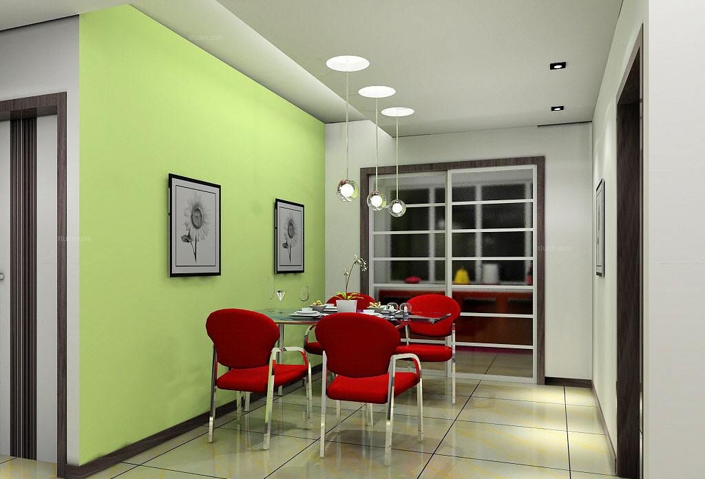 吊頂能夠為家中分隔出明顯的高度差別,也能讓餐廳的高度與客廳或者廚房不同,同時,地面鋪設(shè)不同色彩、不同質(zhì)地的裝飾材料或者不同質(zhì)感光源的使用,都能使餐廳與客廳或者廚房在視覺上產(chǎn)生差別,從而在空間上分隔出就餐區(qū)域。